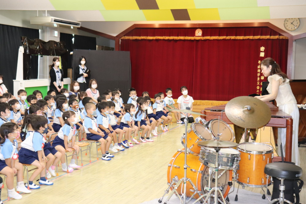広島日野自動車様のご厚意により、石原有希子様(マリンバ)、浅田真生様(マリンバ・パーカッション)、藤本佳奈美様(ピアノ)にご来園いただき、ふだんあまり触れる機会のない楽器の音色で楽しい音楽鑑賞になりました。