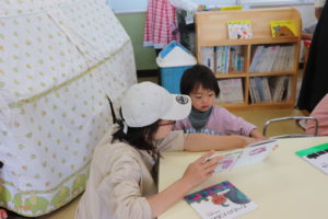 わくわくランドはいつもホールで行っていますが、わくわくルームは幼稚園生活の体験をしていただくということで、保育室に入り少し戸惑っている様子も見られましたが、絵本を読んだり、おままごと遊びをしたり、パズルをしたりと、楽しんだお友だちです。