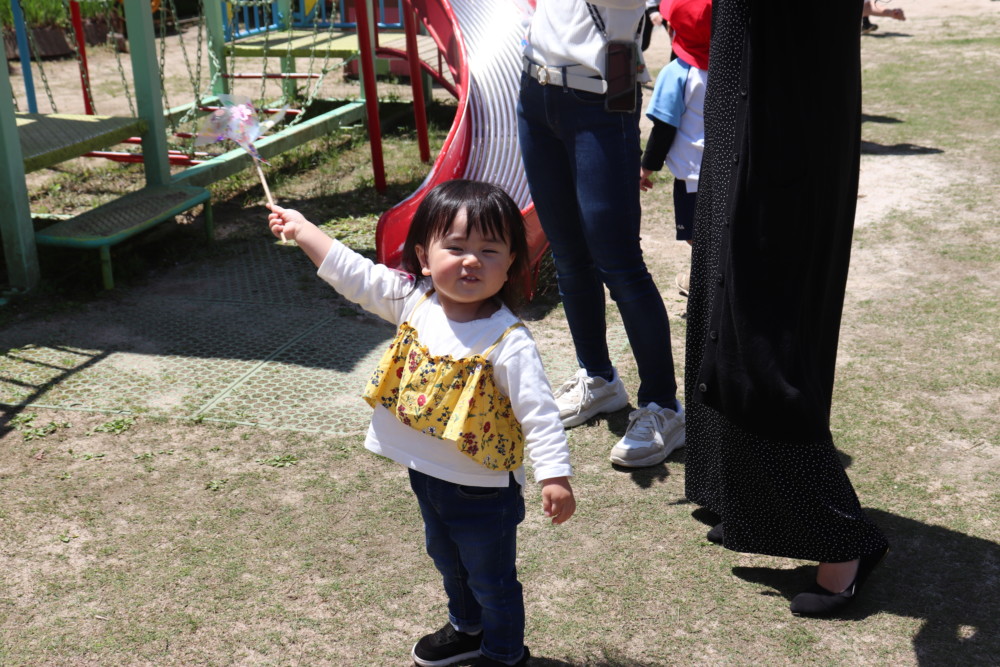 出来上がった風車を持って、戸外で風車が回る様子を嬉しそうに見せてくれました!!