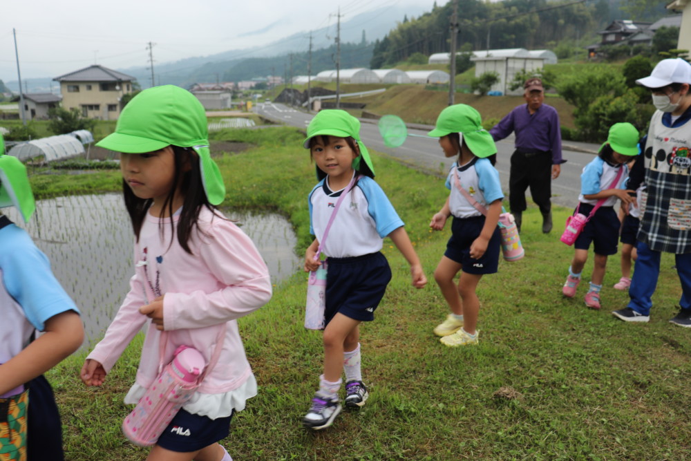 田んぼについてあぜ道を落ちないように気を付けて歩いて…