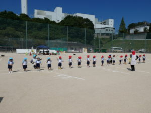 当日と同じ広さでかけっこや競技、踊りを行いました。