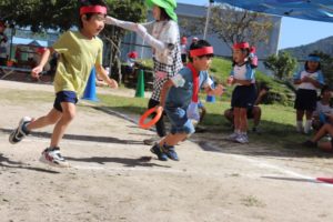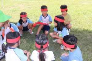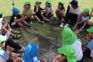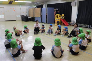 みんなで丸くなり、自己紹介をした後、一緒にお芋の歌や、どんぐりの歌を歌いました。