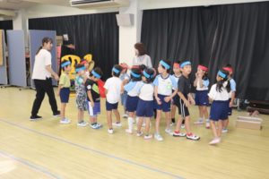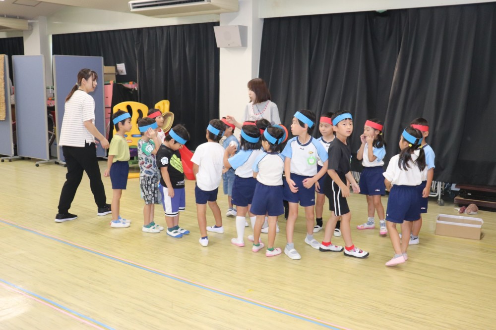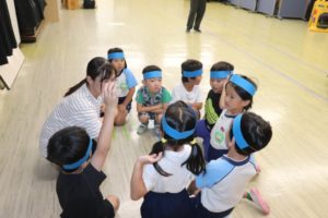 今日、年長くま組さんは久地保育園の年長のお友だち4名と交流しました。