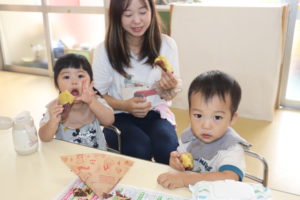 今日のわくわくランドでは秋の味覚、焼き芋を食べました(*^-^*)