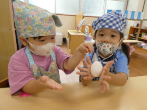 「冷たい卵だー!」「ころころしてるね!」