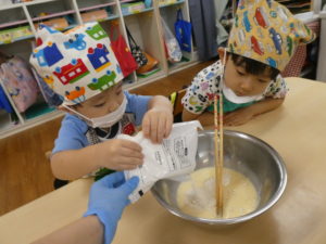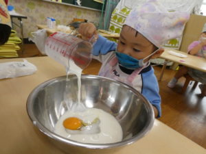 ホットケーキミックスを入れて…