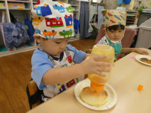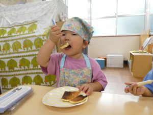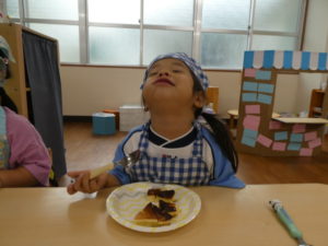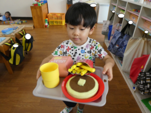クッキング後は、おままごとでホットケーキを焼いて持ってきてくれました♪