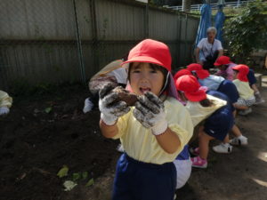 おいもどこにあるかな~? 探しながら土を掘っていくと・・・