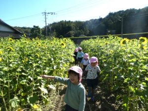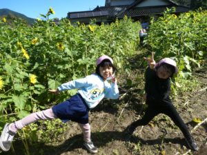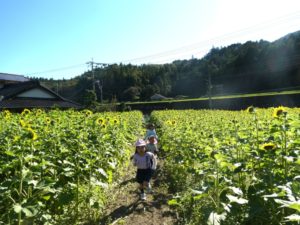 戸山の郷 中王の石井さんのひまわり畑にご招待いただき、早速ぱんだ組さんで