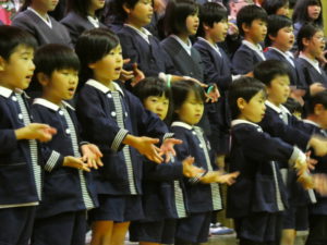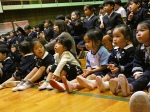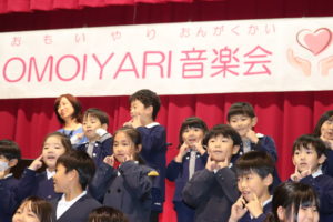 年少組、年中組、年長組のお友だちは、久地南小学校で行われるOMOIYARI音楽に参加しました。