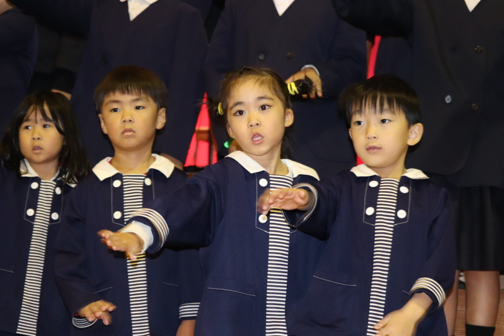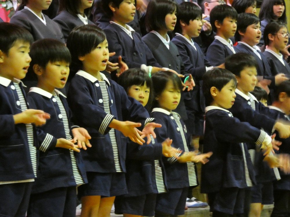 年長組の子どもたちは、歌手の藤田さん、木山さんと一緒に『ありがとうの花』と『おもいやりのうた』を手話をしながら歌いました。
