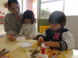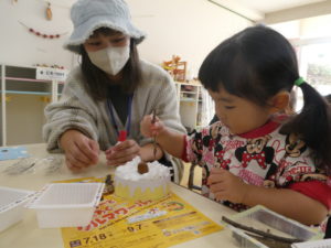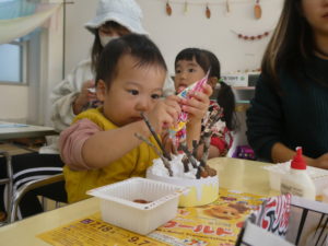 真剣な表情で集中して飾ったり、「コロコロ~」「ぎゅぎゅ!」と声に出しながら手を動かしたり、様々な姿が見られました。