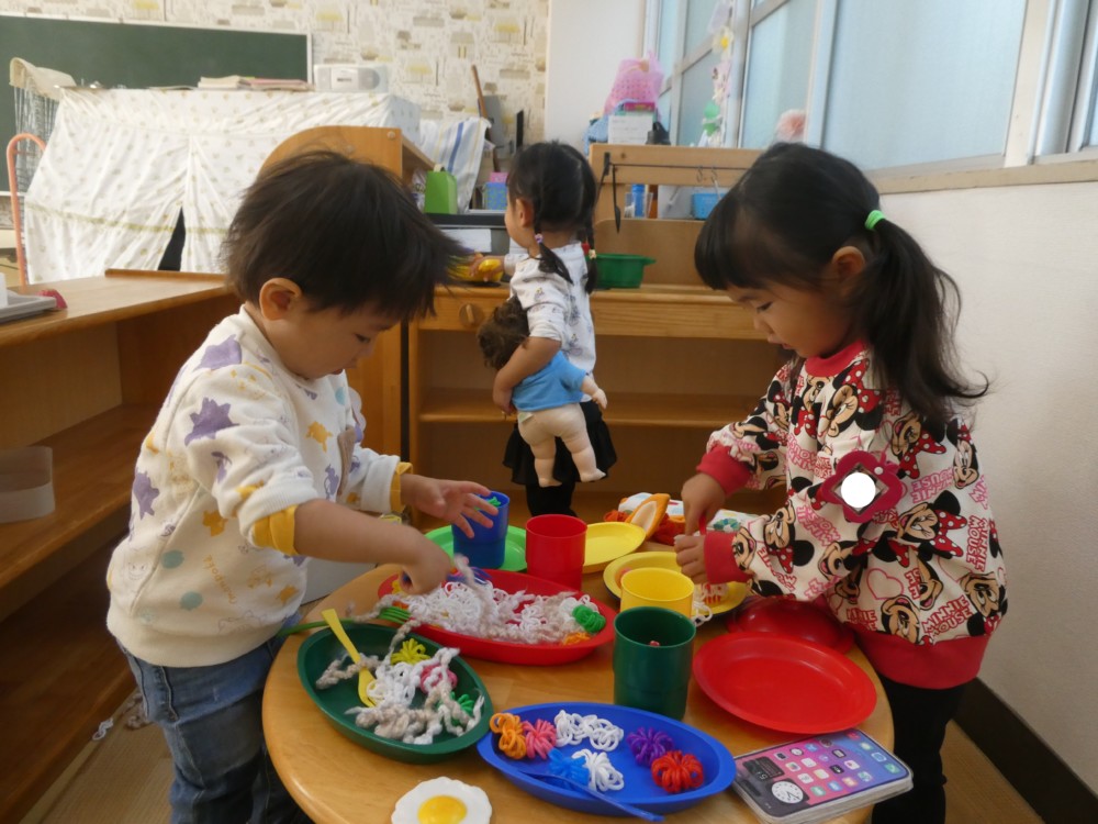真剣な表情で集中して飾ったり、「コロコロ~」「ぎゅぎゅ!」と声に出しながら手を動かしたり、様々な姿が見られました。