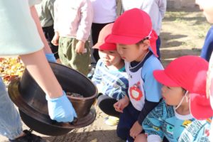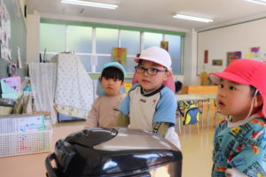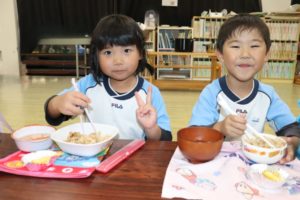 「いいにおい~」「いっぱい食べよう!」と食べることを心待ちにする子どもたちでした(*^-^*)