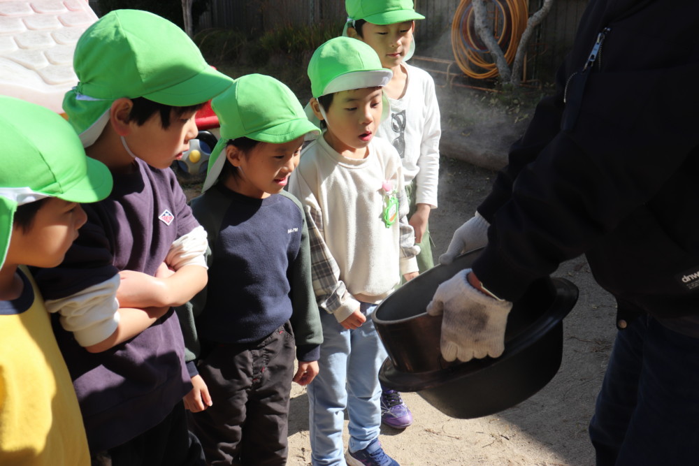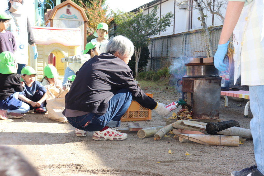 準備ができると園長先生に火をつけてもらって炊けるのを待ちます!
