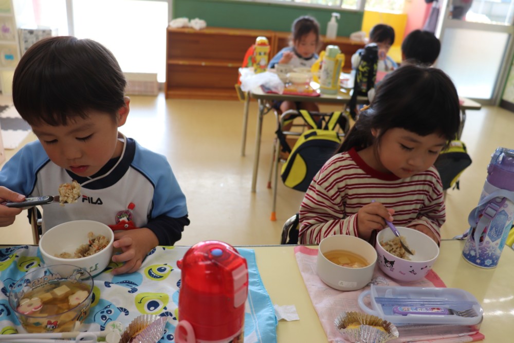 「いいにおい~」「いっぱい食べよう!」と食べることを心待ちにする子どもたちでした(*^-^*)
