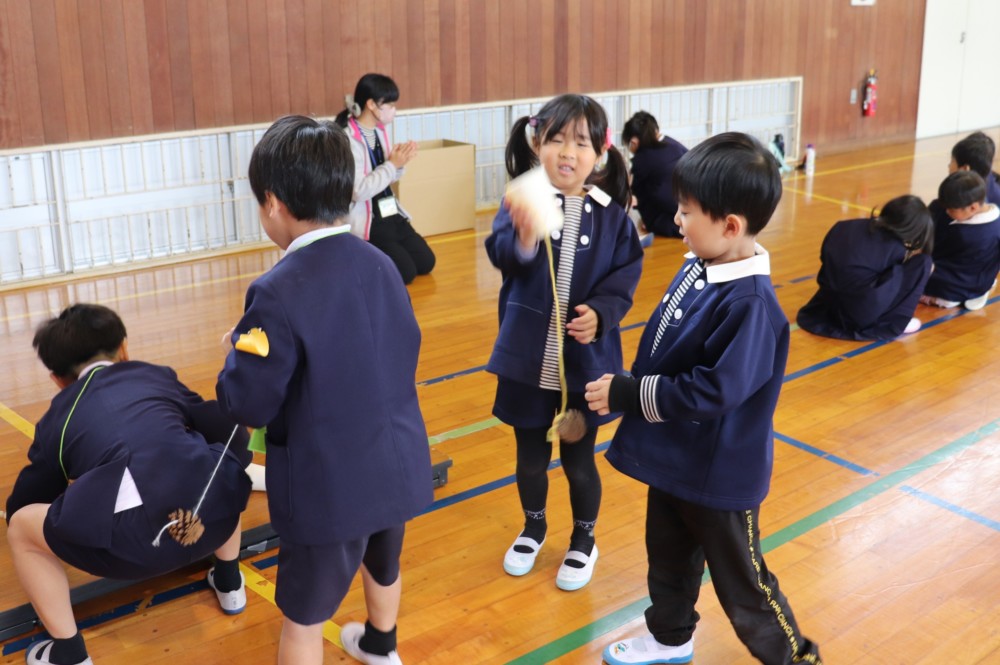最後にかわいいドングリのペンダントをかけてもらい、楽しい時間を過ごさせていたお兄さんお姉さんに、