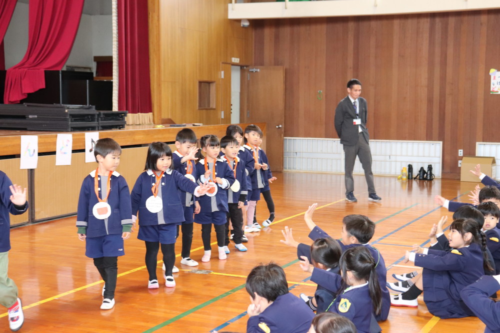 体育館に入ると拍手で迎えられ、お話を聞いて始まりました。
