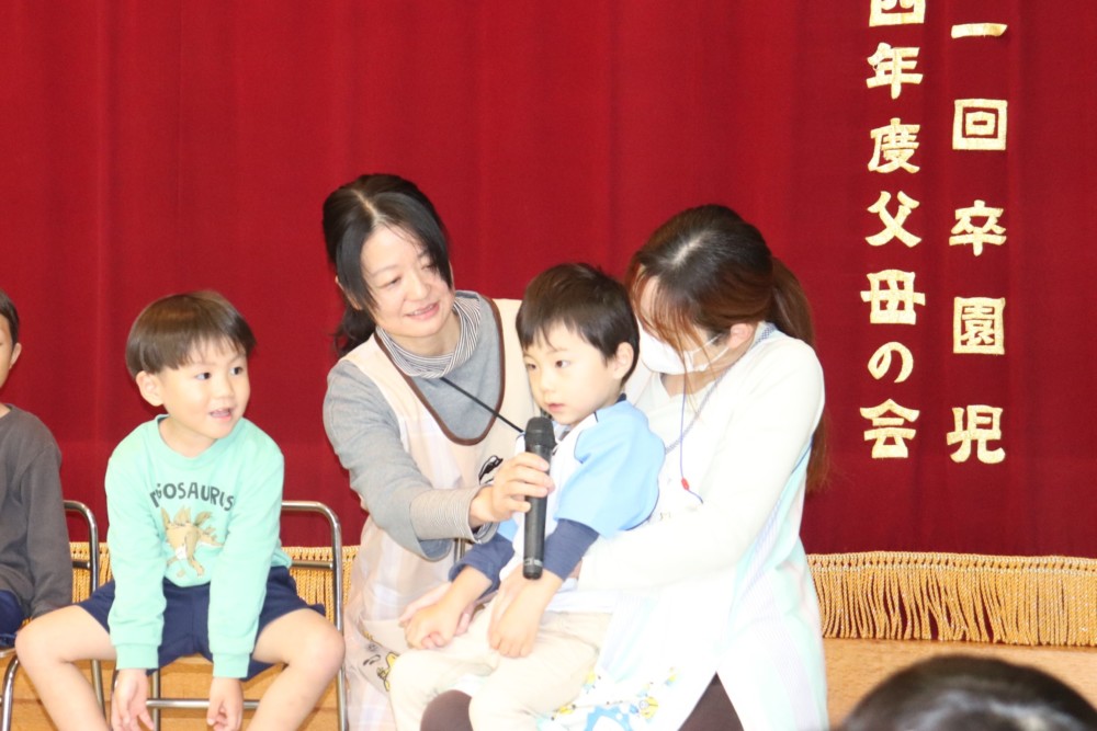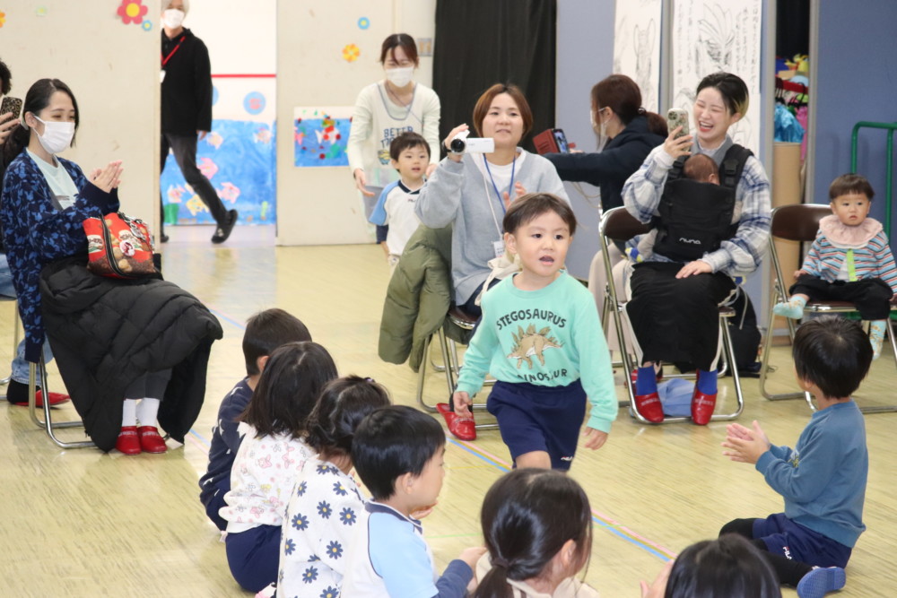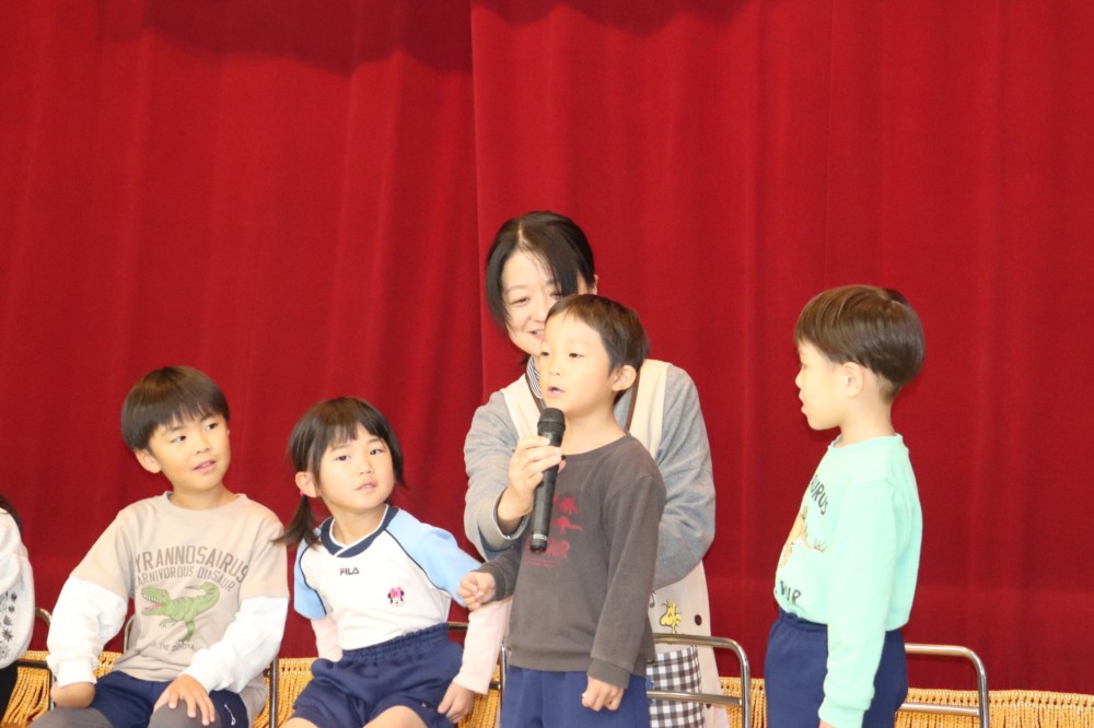 たくさんのお友だちの前で少し恥ずかしそうな様子も見られましたが、お名前と年齢を言い、