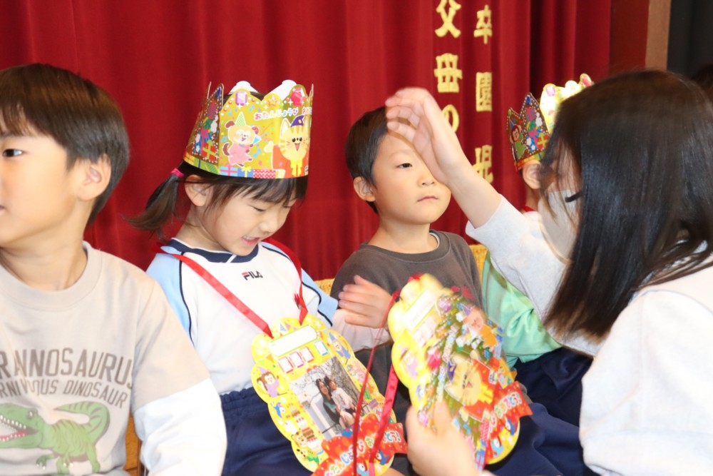 保護者の方からお祝いのメッセージを、幼稚園のお友だちから歌やお祝いの言葉のプレゼントを貰いました。