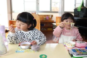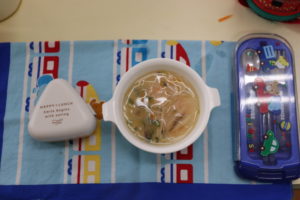 月曜日はおむすび弁当ということで、今日は何のお汁かな?と楽しみにしていたお友だち。