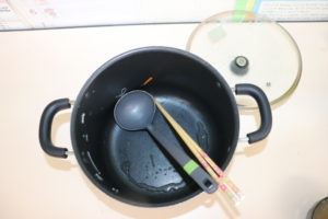 最後に鶏ガラスープの素を入れ、お当番の仕事を終えました。