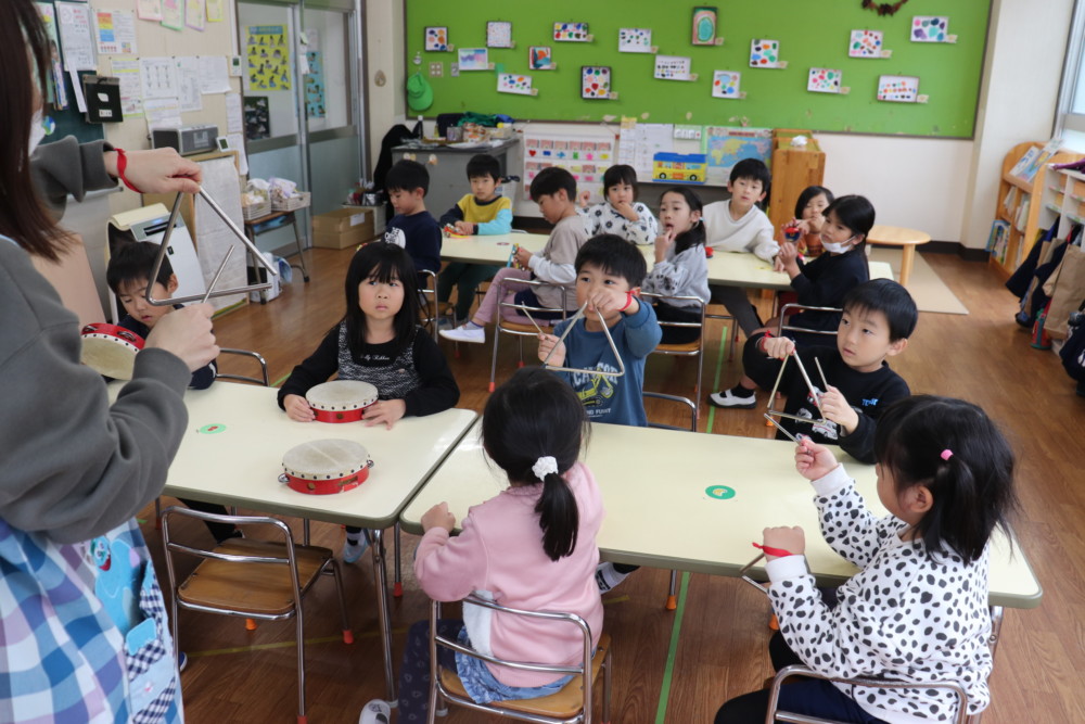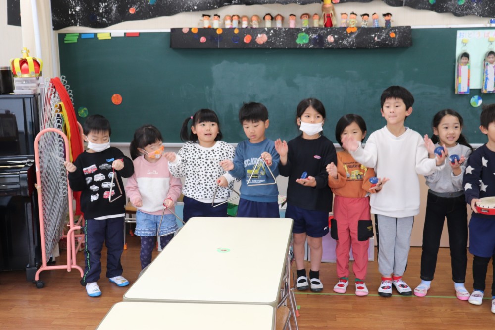 いろいろな楽器とリズムで楽しく歌いました(*^-^*)