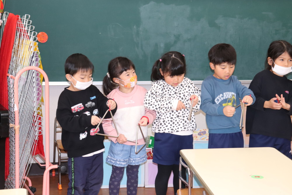 そこで、『あわてんぼうのサンタクロース』の歌に合わせて楽器遊びをしてみることに(^^♪