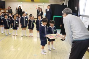 江島さんに園児から「ありがとうございました!」と