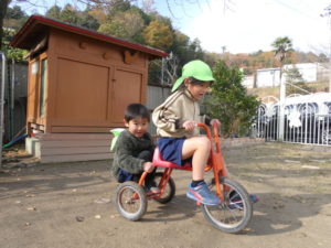 お友だちを乗せて三輪車でおでかけ♪