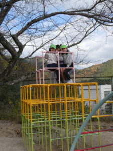 ジャングルジムの上まで登れるようになって嬉しいお友だちから