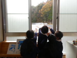 降園前に気づいた子どもたちは大歓声の大喜び!