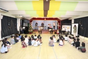 まず先生たちからのプレゼント「サンタが街にやってくる」の演奏を聴きました。