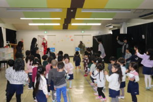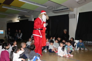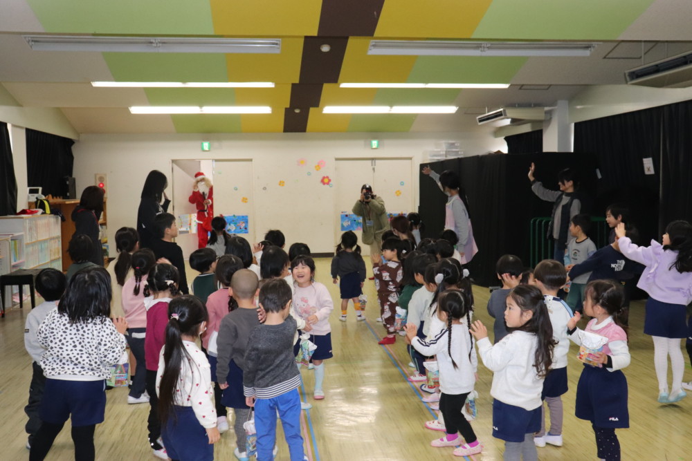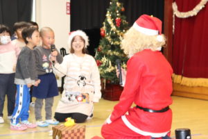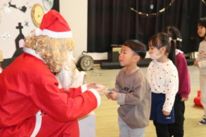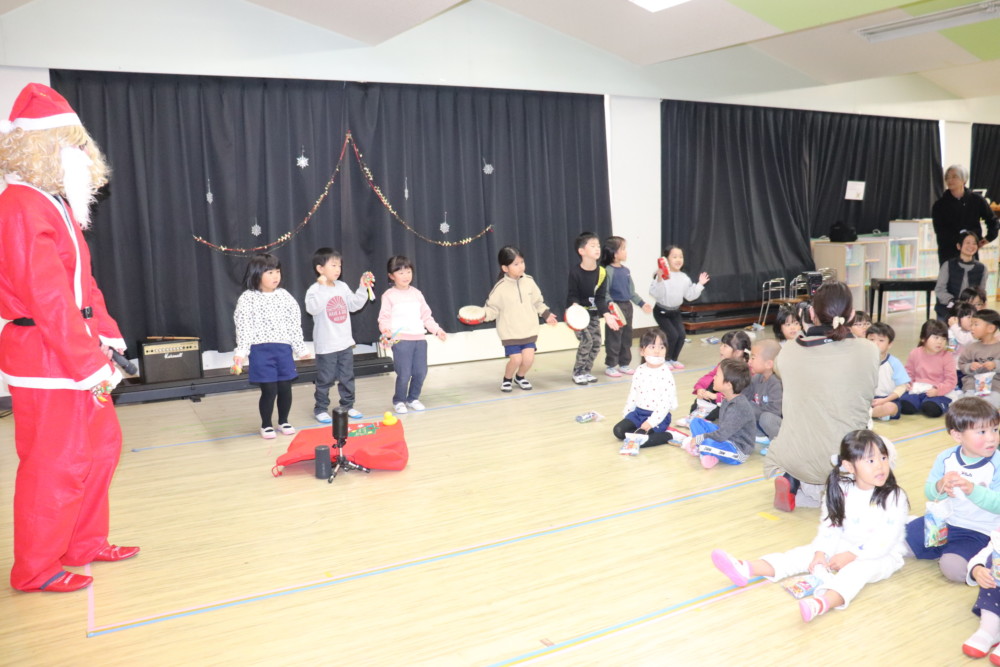 プレゼントをもらった後はサンタさんと一緒に「あわてんぼうのサンタクロース」の歌を歌いました♪