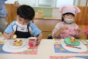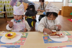 「美味しい~」自分たちで作ったケーキは特別おいしかったようです☆