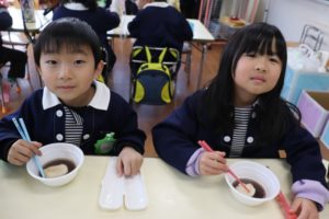 とんどの後は鏡餅をぜんざいにしていただきました!