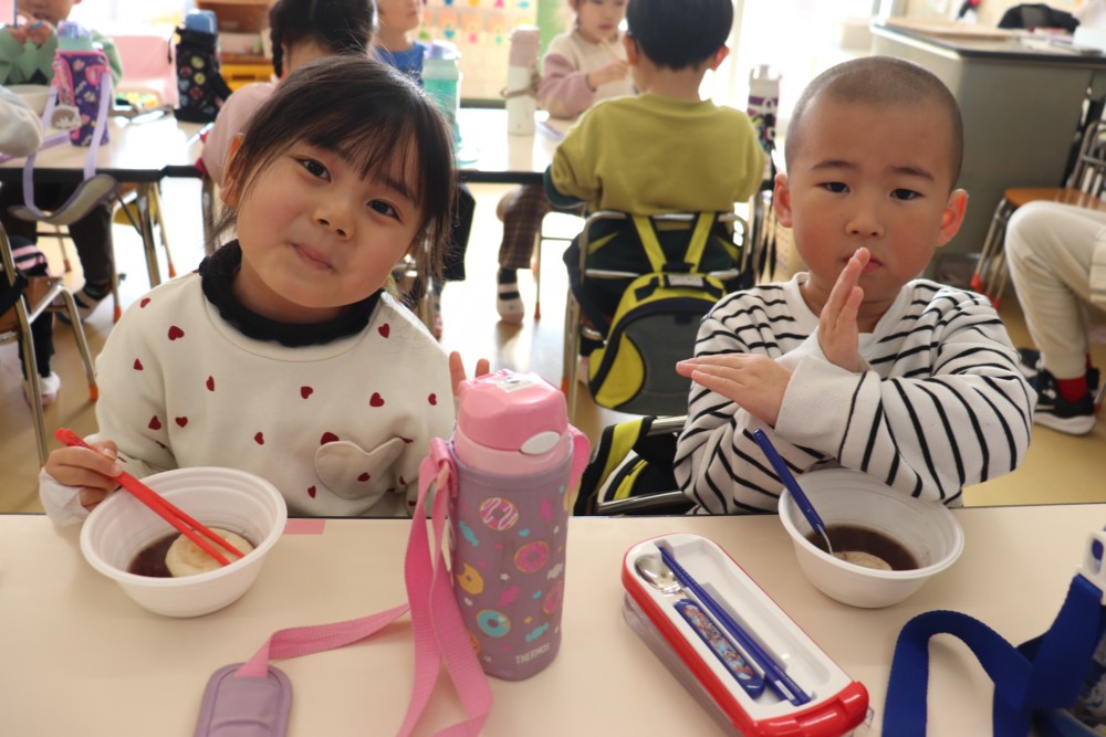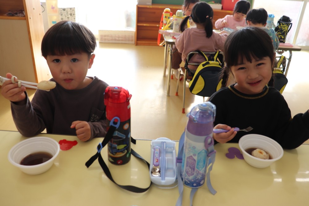 とんどの後は鏡餅をぜんざいにしていただきました!
