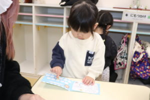 季節のお歌を歌ったり、シールノートに参加シールを貼ったりしました♪