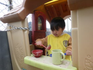 雨が降ったり止んだりのお天気でしたが、お外やお部屋で好きな遊びを楽しみました。