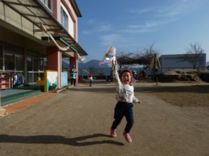 学校法人虹山学園 安佐幼稚園 > すくすく日記 > 凧あげをしたよ!!(年少うさぎ組)