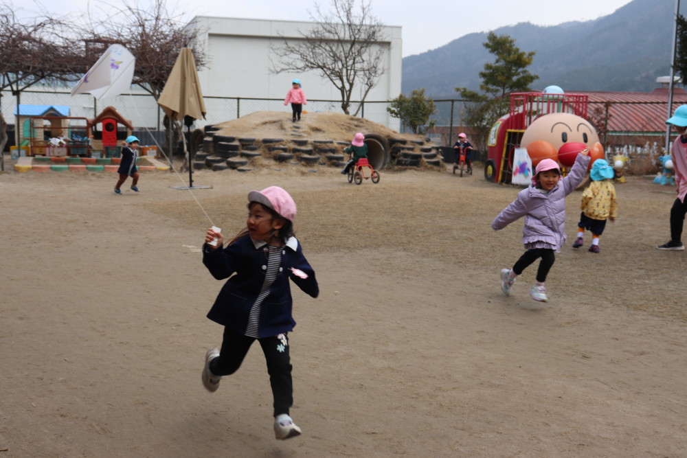 凧あげをしてたくさん走っていたお友だち!(^^)!