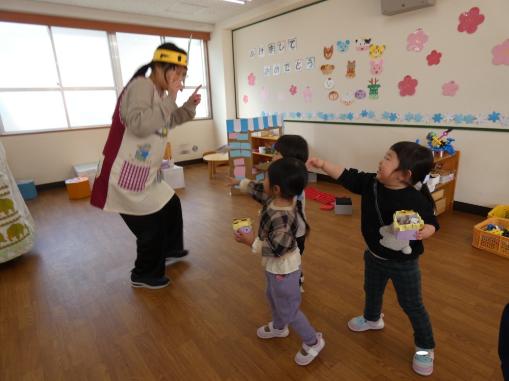 だんだん鬼役も上手になってきた子どもたち!「鬼だぞ~~」となりきっていました!