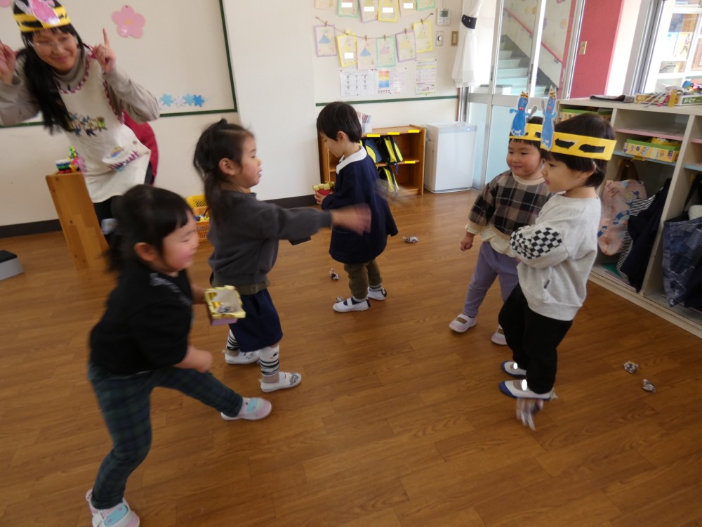 次は交代で子どもたちが鬼役になったり豆を投げる役になったり…