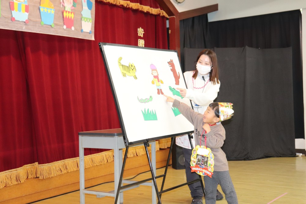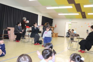 寒い日にお散歩へ行くおはなしでは、お誕生日のお友だちにも参加してもらい楽しい雰囲気になりました。