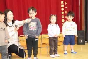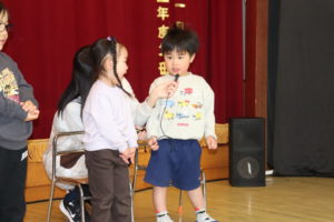 緊張しながらも自分の名前と何歳になったかみんなの前で言いました☺