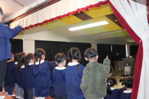 今日は満3歳うさぎ組のお友だちもお客さんになり発表を見ました。