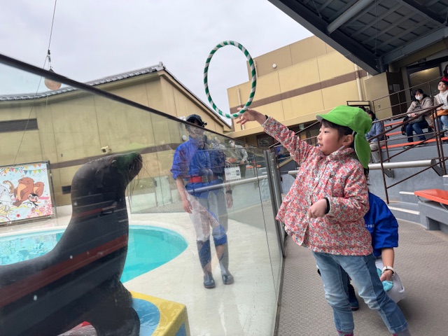 水族館を出発する時には雨が降っていて、傘をさして歩きました。
