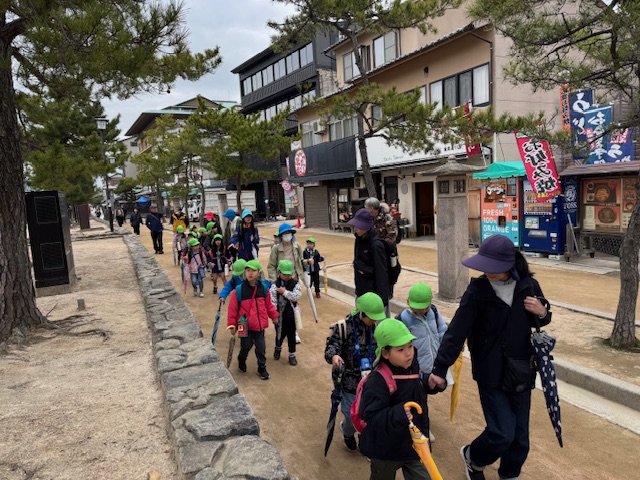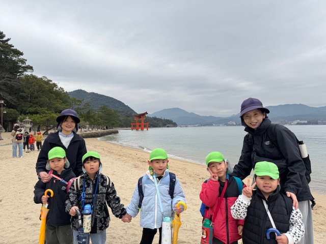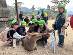今日は、くま組の子どもたちが楽しみにしていた宮島に卒園遠足に行きました。