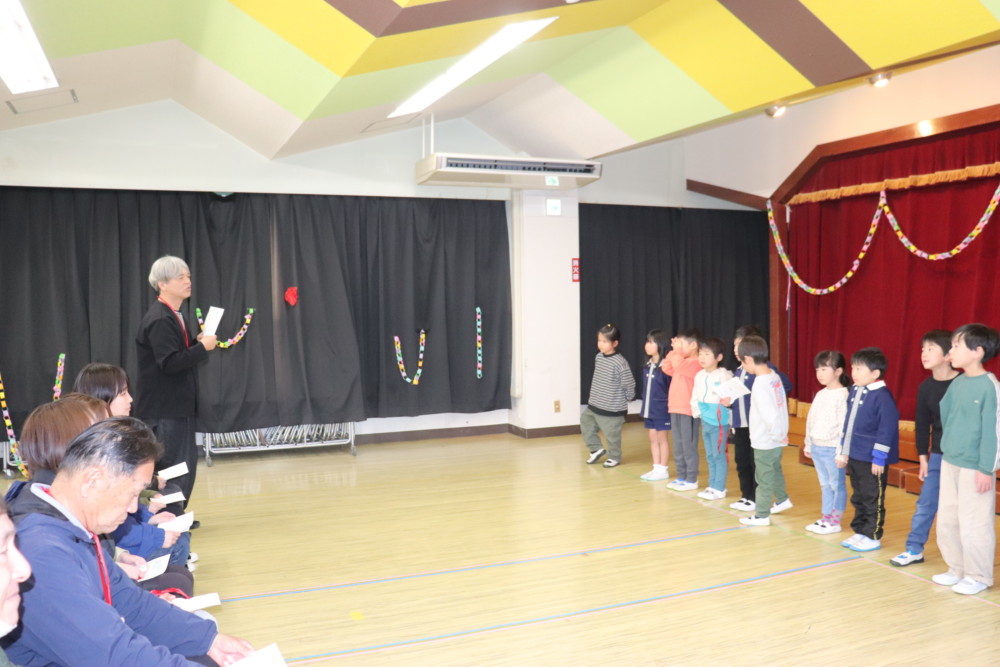とお話があり、子どもたちはとても真剣に園長先生の言葉に耳を傾けていました。