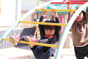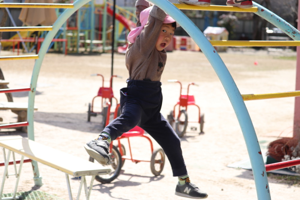 ぽかぽかあたたかい日差しの中、春の気配を感じながら元気いっぱい遊んだぱんだ組の子どもたちです。